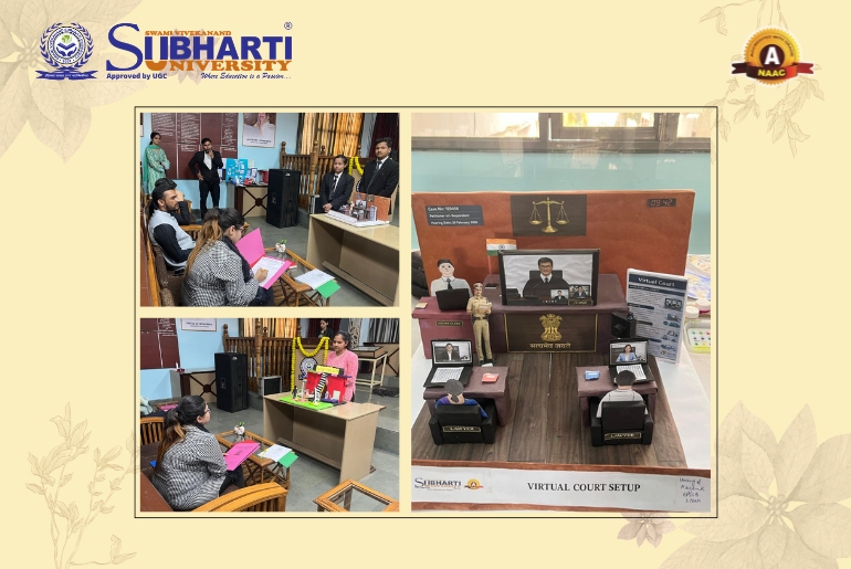 The Student’s Innovation Club of the Sardar Patel Subharti Institute of Law successfully organized a series of creative academic competitions on 28 February 2026. The activities included the 2D/3D Model Making Competition, Slogan & Poster Making Competition, and Reel Making Competition, conducted to promote innovative thinking and awareness of legal and social issues among students.The 2D/3D Model Making Competition was based on the theme “Innovative Legal Solutions for a Sustainable Future.” Participants prepared models and visual representations focusing on areas such as cyber law, digital rights, constitutional law, environmental protection, legal technology, and human rights. Students creatively presented ideas including AI in legal research, smart courts, environmental justice models, prison reforms, and legal aid systems, demonstrating the practical relevance of law in addressing modern societal challenges.Alongside this, the Slogan & Poster Making Competition was conducted to raise awareness regarding important national initiatives such as Swachh Bharat Abhiyan, Digital India, Beti Bachao Beti Padhao, Atmanirbhar Bharat, Mission LiFE, Make in India, and Fit India Movement. Participants designed handmade posters and crafted impactful slogans highlighting the importance of social responsibility, environmental sustainability, and national development.