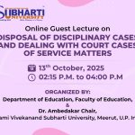 Under the auspices of the Cultural Committee of Swami Vivekananda Subharti University, the Department of Education and the Department of Physical Education, Faculty of Education, jointly organized a Mehndi Competition on the theme “With a Developed India: Colors of Art.” Date 09.10.2025. The event witnessed enthusiastic participation from 75 talented students representing various faculties of the University.