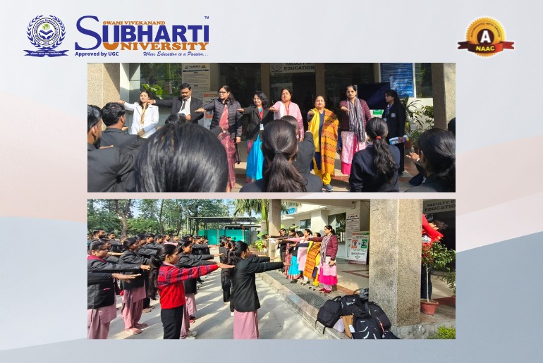 The Department of Education, Faculty of Education,Swami Vivekanand Subharti University, Meerut, organized a “PLEDGE” activity on 28 Nov 2025 in the Courtyard of Department of Education, FoE under NASHA MUKT BHARAT ABHIYAN -2025 on the tagline “Nasha Mukt Bharat,Khushal Bharat .”