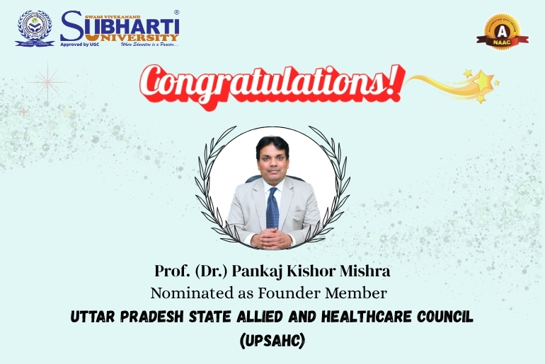 In a landmark achievement for Swami Vivekanand Subharti University, Prof. (Dr.) Pankaj Kishore Mishra, Principal of the Subharti College of Allied and Healthcare Sciences, has been nominated by the Government of Uttar Pradesh as a founder member of the newly constituted Uttar Pradesh State Allied and Healthcare Council (UPSAHC).